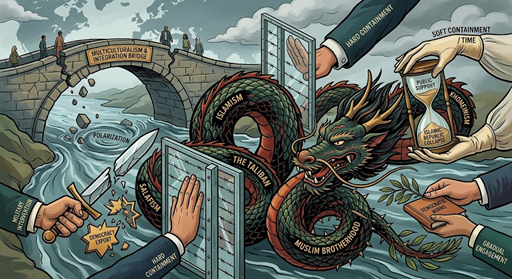 On one side, left-leaning approaches tend to use force only against the most extreme and openly violent groups, and handle everything else through engagement, integration, and “soft containment.” The assumption is that, over time, societies converge, and moderation wins.